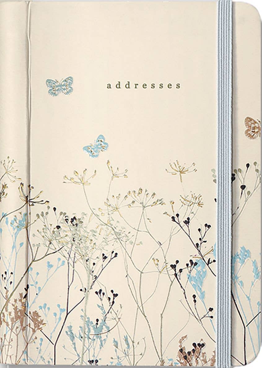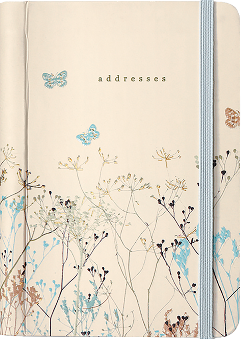 Pretty pocket-sized personal address book has space for more than 400 contacts! Record names, addresses, home and mobile phone numbers, work/fax numbers, and email addresses. Tabbed dividers make finding specific contacts easy. The inside back cover pocket holds postage stamps, notes, and more. The elastic band attached to the back cover keeps your place or keeps address book closed. Concealed wire-o binding lies flat for ease of use. Butterflies design gleams with gold foil accents. Gloss highlights add polish.