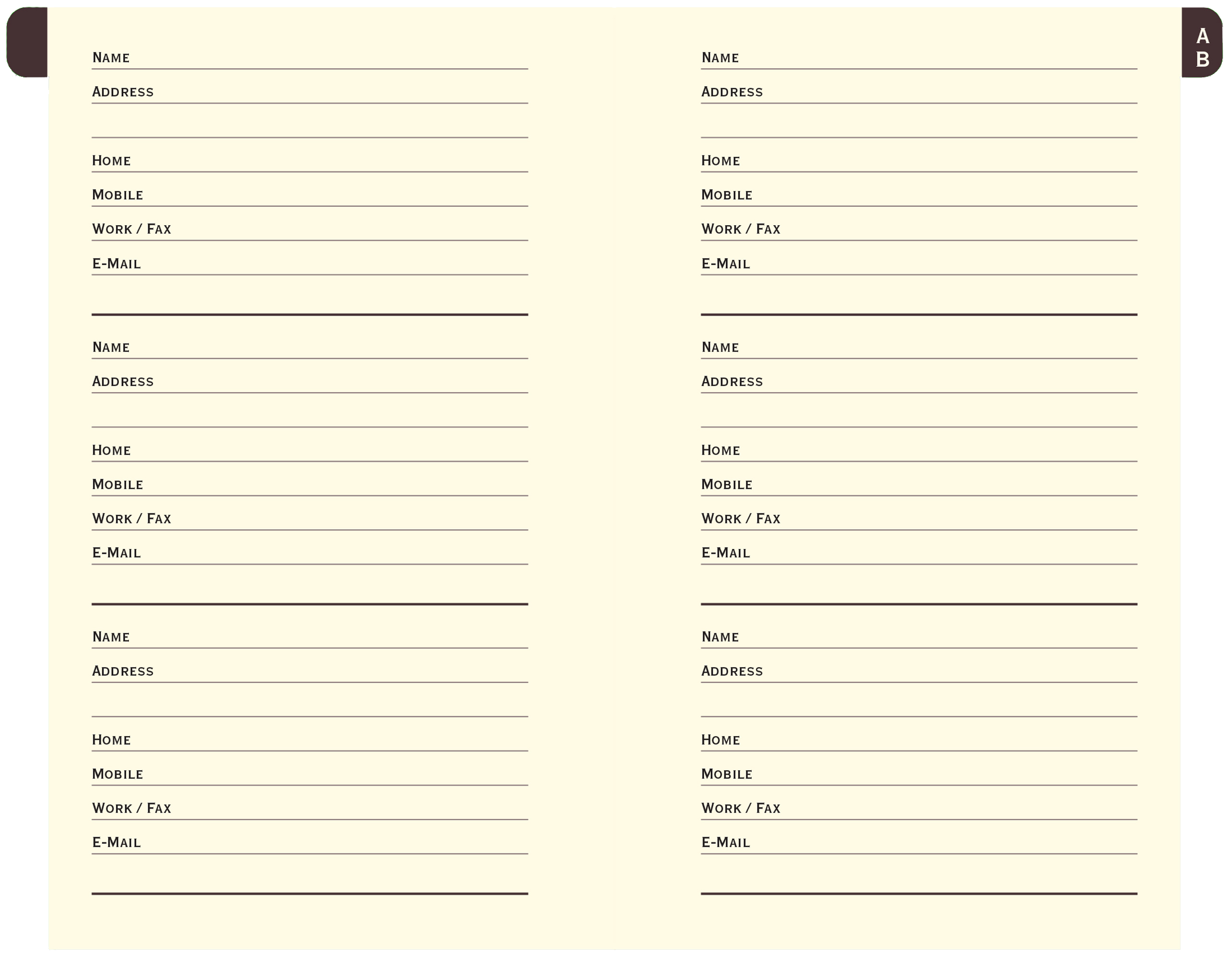 Mini address book measures 4-1/4'' wide x 5-3/4'' high. 160 pages.