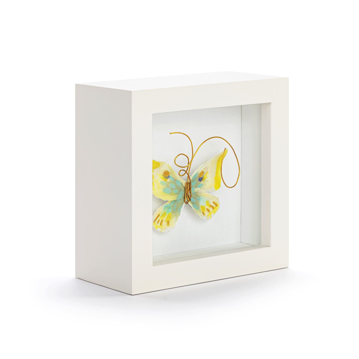 This beautifully imaginative collection of artisan butterfly reproductions, including the Endlessly Hopeful Yellow & Green Butterfly Shadow Box - 4in, infuses Elisabeth Hays' love of natural elements, mixed media, translucent materials and abstract art.