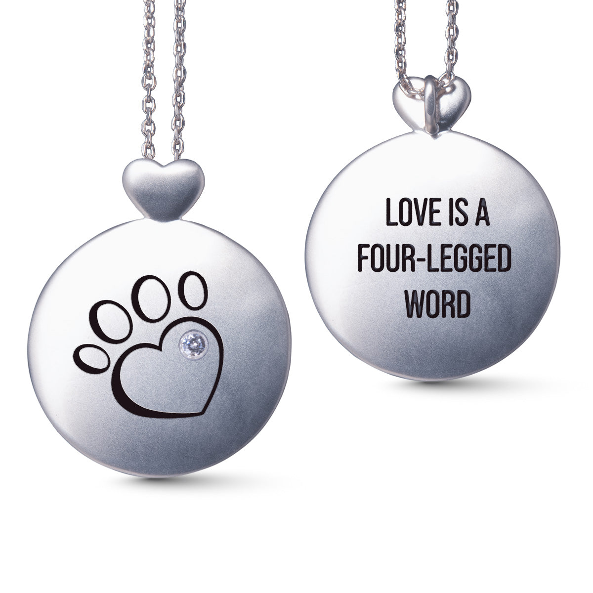 Sentiment on back: Love is a four-legged word.