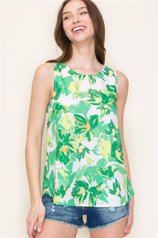 Unleash your flower power with our Sleeveless Floral Top. With a round neck and keyhole button back, this top is perfect for warm weather and casual outings. Show off your playful side with this charming floral design.